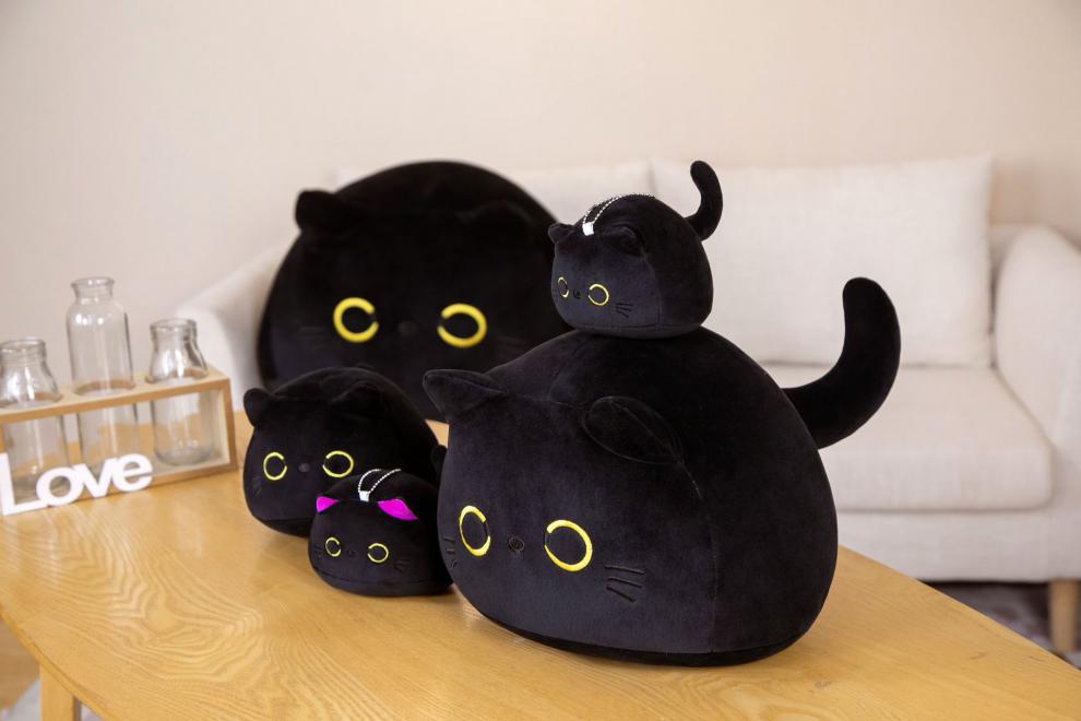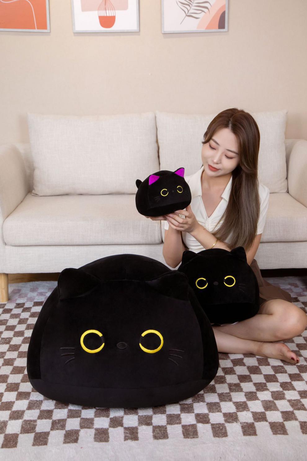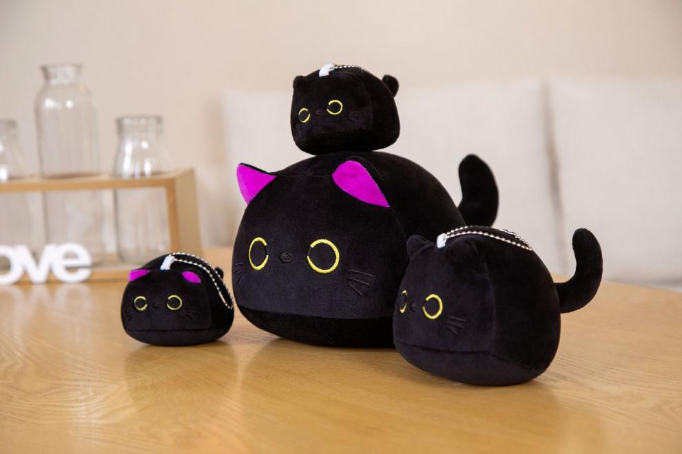 Elige entre dos encantadores colores: Gato Negro o Gato Morado , para que combine con tu estado de ánimo, estilo o decoración. Disponible en tamaños de 10 cm a 70 cm, hay un peluche perfecto para cada rincón de tu casa (¡o para abrazarlo con mucha fuerza!).